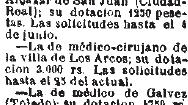 Años más tarde, el 15 de mayo de 1876, el diario "Correspondencia de España" también se hacía eco de la vacante de medico-cirujano para Los Arcos.